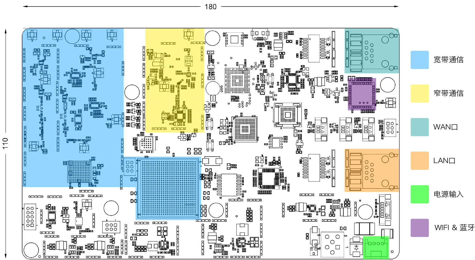 集成LAN-IN, LAN-OUT, USB OTG, WiFi/BT的通⽤开发板,支持470M + 2.4G/5.8G